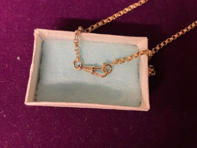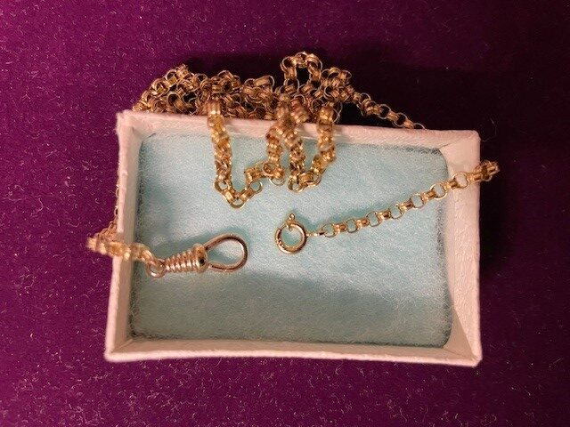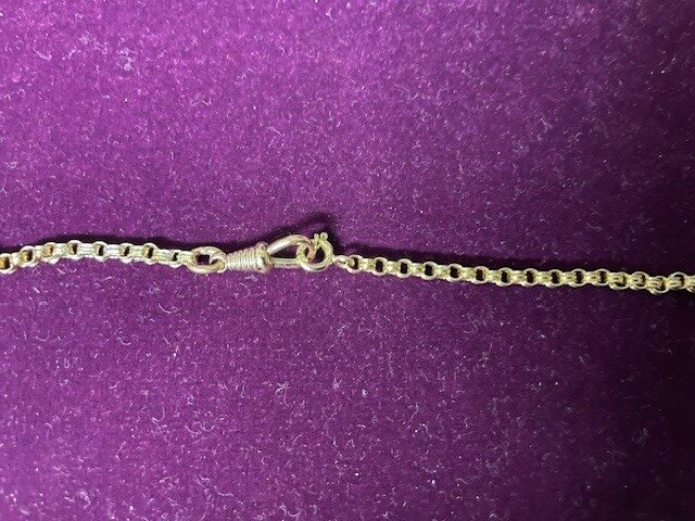 Antiek 14 kt. geelgouden jasseron collier met Wilhelmina schakel en vaste musketonhaak met veerring. Het collier is 70 cm. lang en weegt 6,7 gr. Ned. gekeurd met art.3 voor 585/1000 goud.