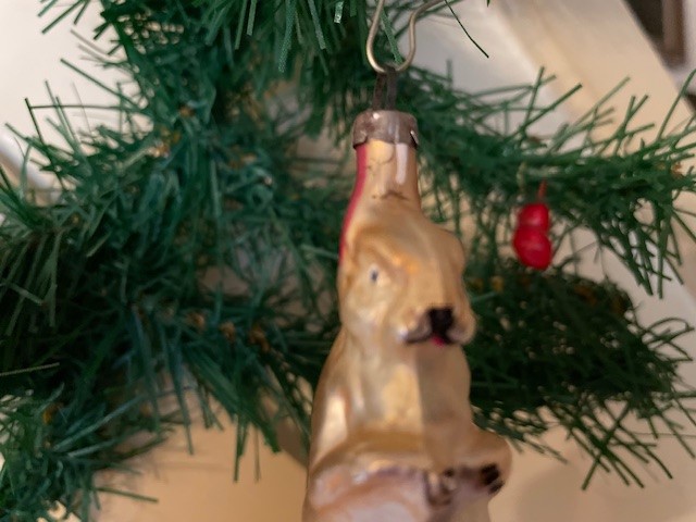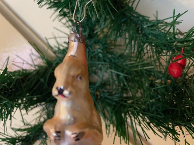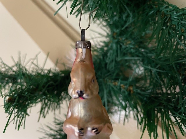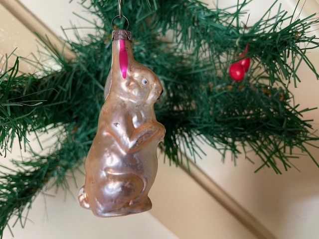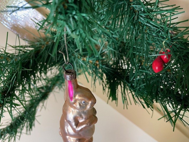 Home > Webshop > Antieke oude kerstbal een haas of konijn van dun geblazen glas in roze 2e helft 1900
