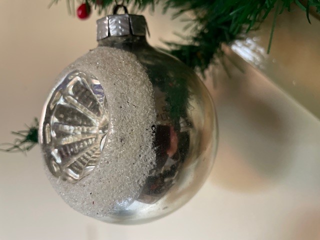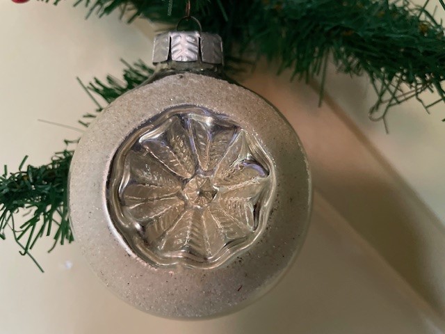 Oude grote deuk of reflex kerstbal van geblazen glas in zilver 2e helft 1900