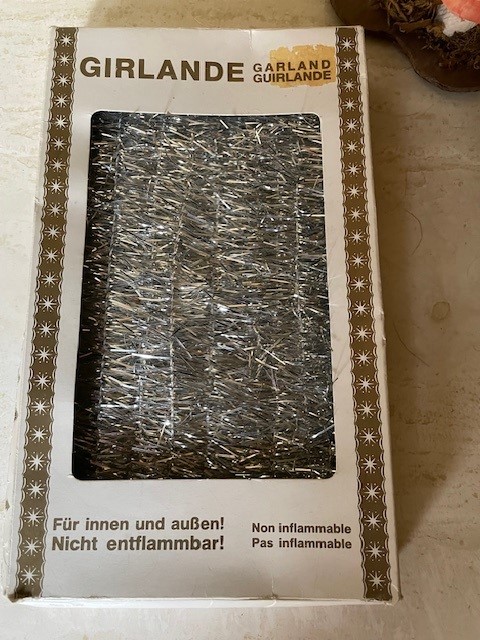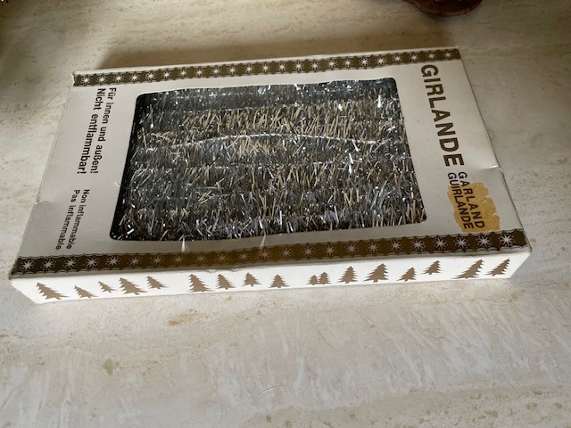 Retro doos met Kerst guirlande of slingers in zilver 1950-1960