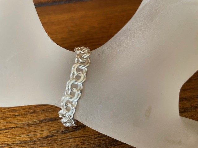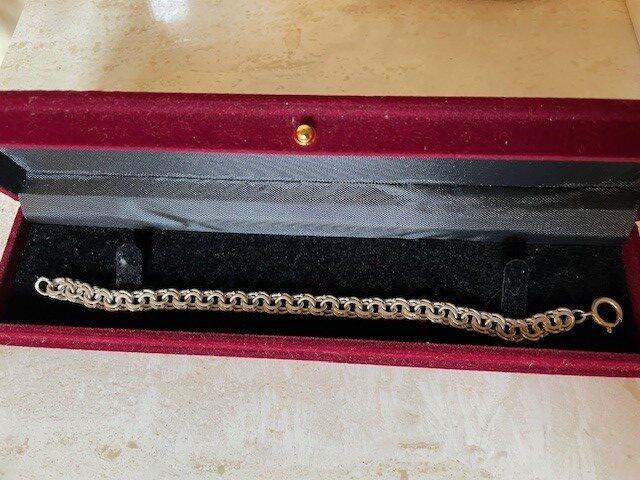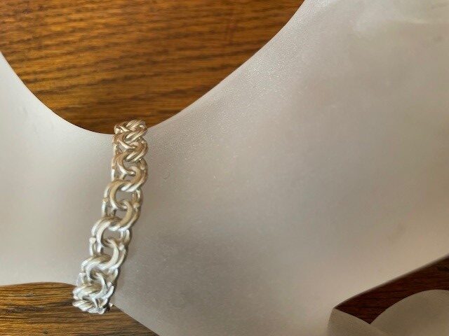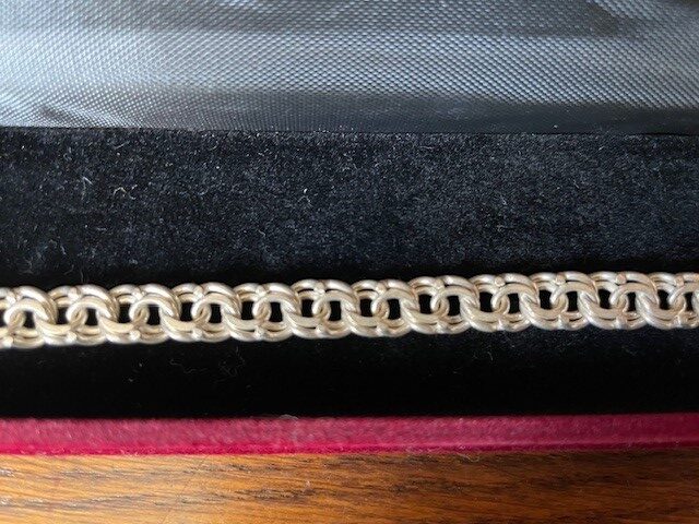 Home > Webshop > Zilveren oude, antieke schakelarmband met bismarck schakel aan veerring